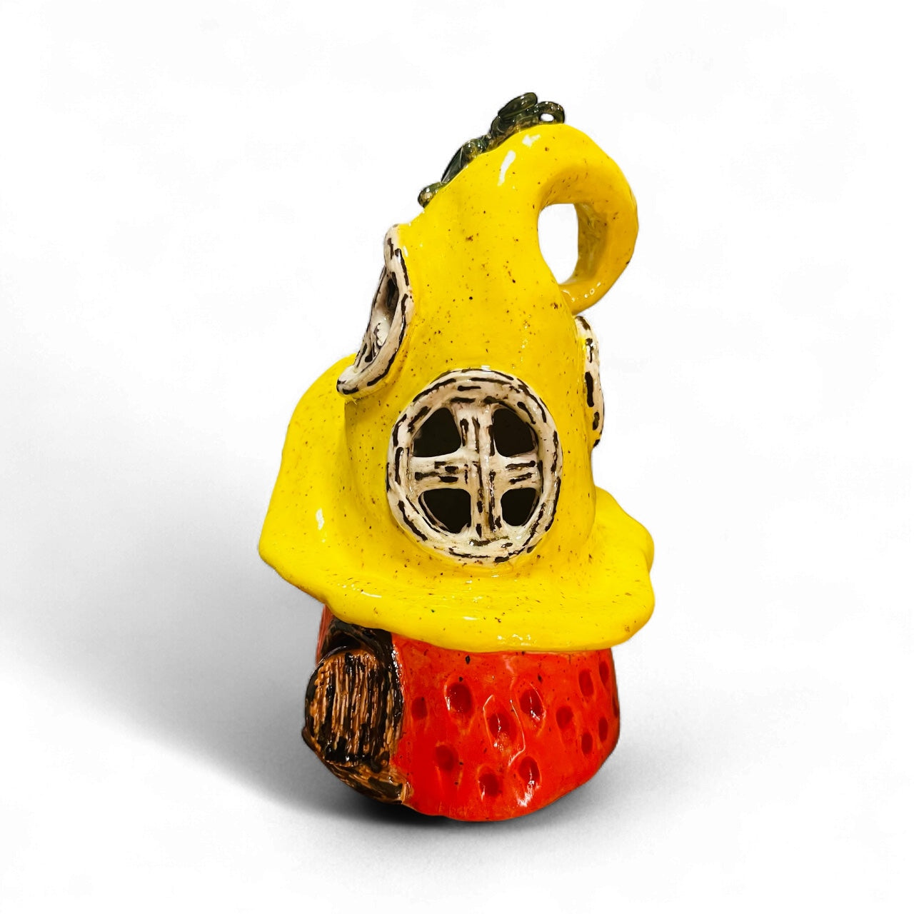 Each piece is a custom creation made just for you. While the gnome you receive will carry the same joyful spirit as the one shown here, no two are ever alike — every swirl, window, and detail is shaped by hand, making your gnome truly one of a kind.